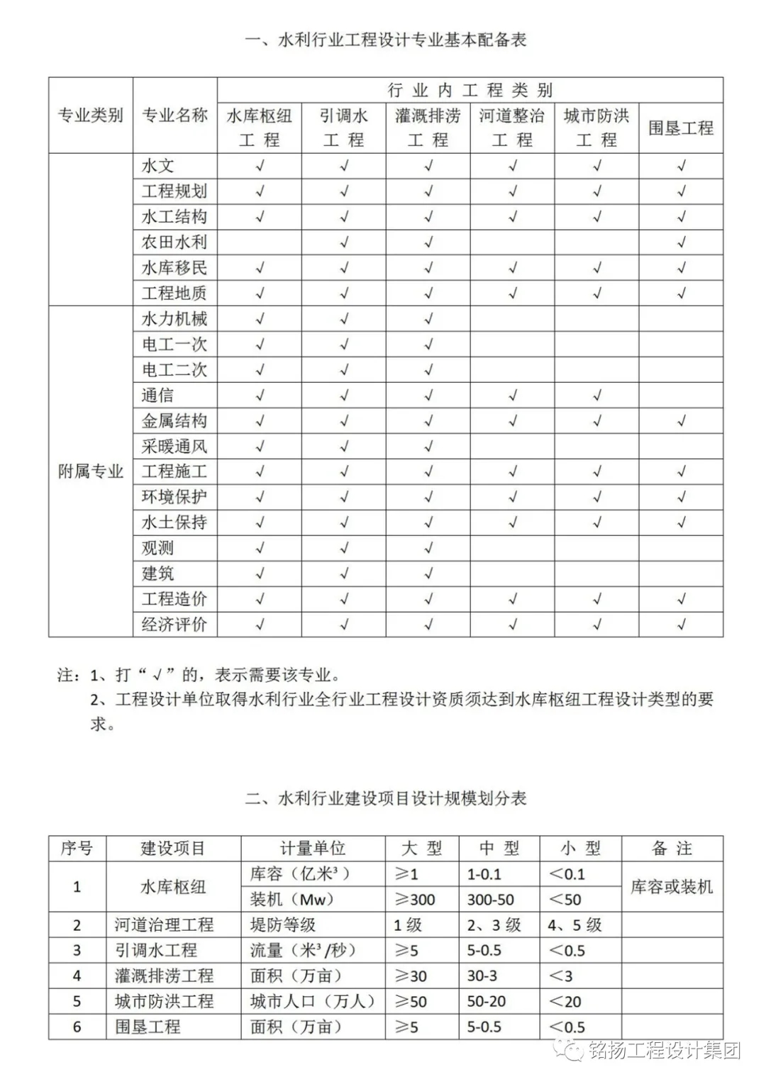 經浙江住房和城鄉建設廳核準,銘揚工程設計集團有限公司喜獲水利行業(水庫樞紐、灌溉排澇、城市防洪)專業丙級,可從事相應的建設工程總承包業務以及項目管理和相關的技術與服務管理服務。水利行業設計資質承攬范圍如下: