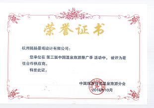 熱烈祝賀我院榮獲中國旅游協(xié)會溫泉旅游分會舉辦的第三屆中國溫泉旅游推廣季活動(dòng)的最佳合作供應(yīng)商!